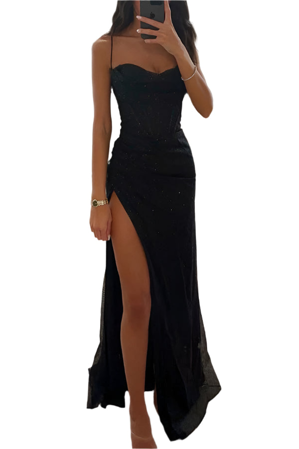 Erlebe zeitlose Eleganz – füge dieses glamouröse Maxikleid noch heute deiner Garderobe hinzu.